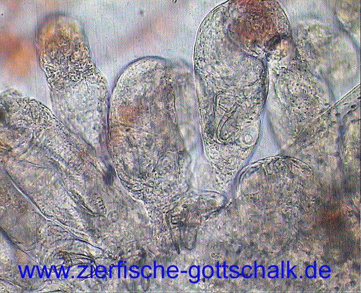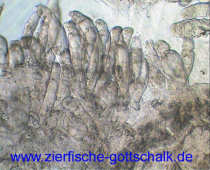 Für die mik. Untersuchung entnimmt man mit einem poliertem Spatel Schleim von den Flanken des Fisches.