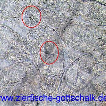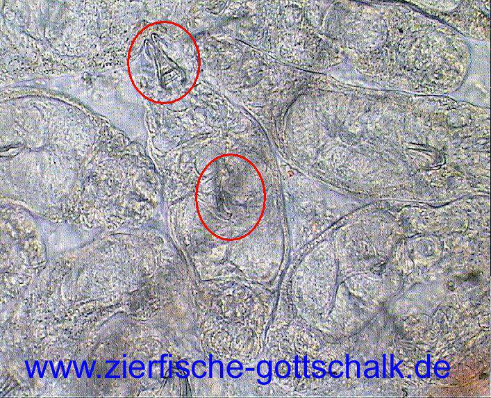 Auch hier ist eine gesicherte Diagnose nur mit dem Mikroskop möglich. Ich erinnere einen Fall, der äußerlich betrachtet eine ganz eindeutige Ichty Infektion war, die mikroskopische Untersuchung ergab jedoch eindeutig Hautwürmer.