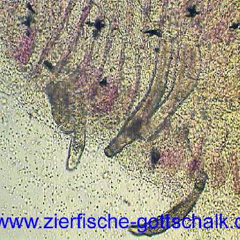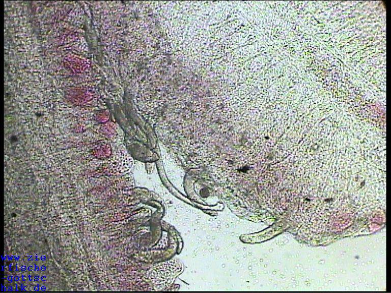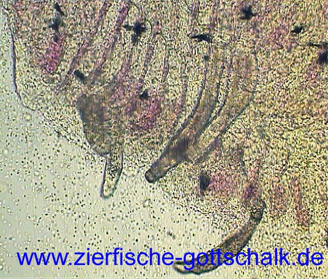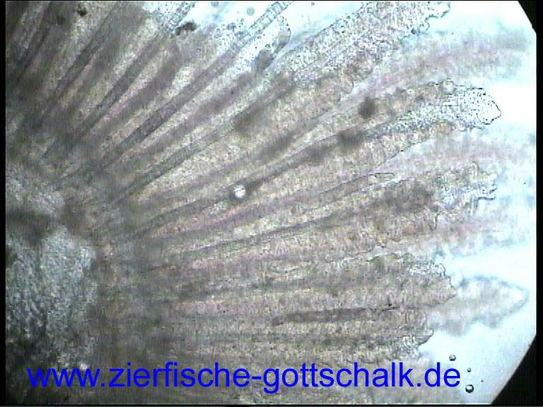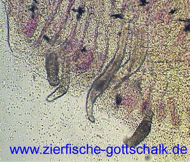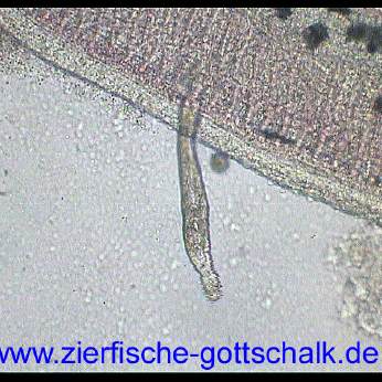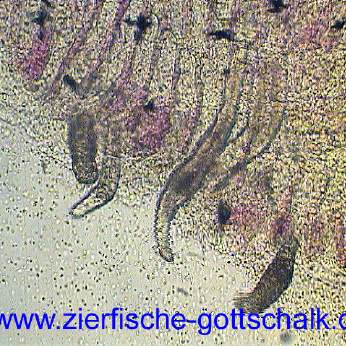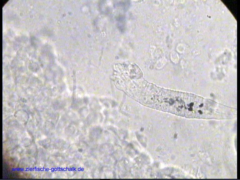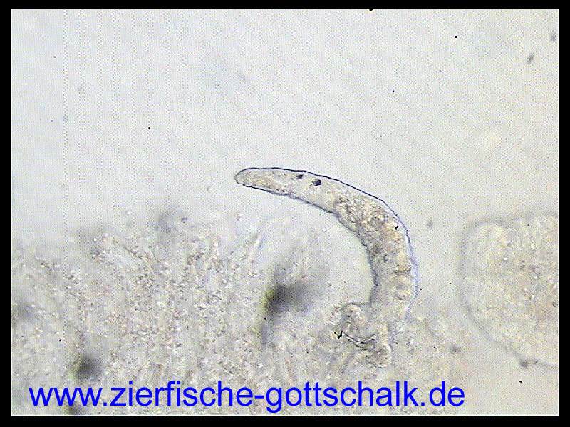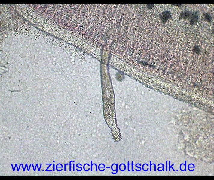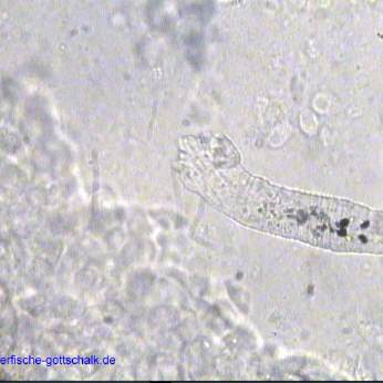 Anmerkung: Manchmal kommt es, vermutlich durch absterbende Kiemenwürmer während der Behandlung zu einer besonders starken Verschleimung der Kiemen, gefolgt von einem starken Bakterienbefall. Optimale Wasserqualität und eine möglichst geringe Keimzahl im Wasser (UV Wasserklärer haben sich hier bewährt) sind hier die beste Vorsorge.